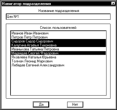 Рисунок 16 - Навигатор подразделения Выбор пользователя осуществляется установкой курсора на необходимой