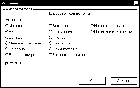 “12”. Клавиша “OK” закрывает окно настройки условий выборки