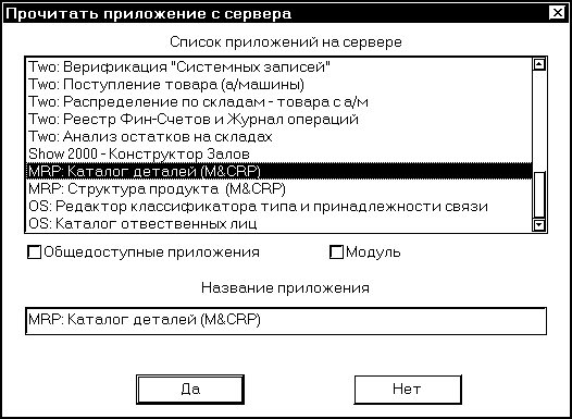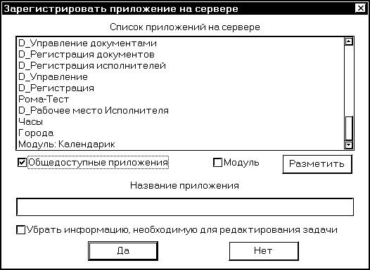 - Список приложений на сервере - список существующих распределенных или общедоступных приложений.
