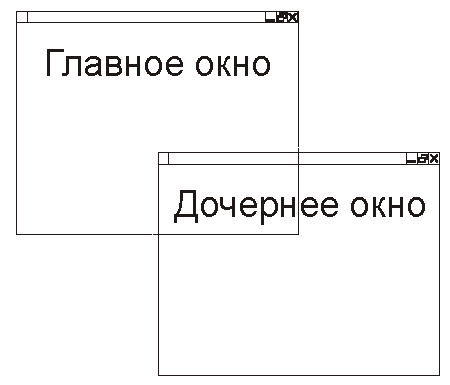 Дочернее окно зависит от работы главного окна. Закрытие главного окна приводит к закрытию всех его дочерних окон.