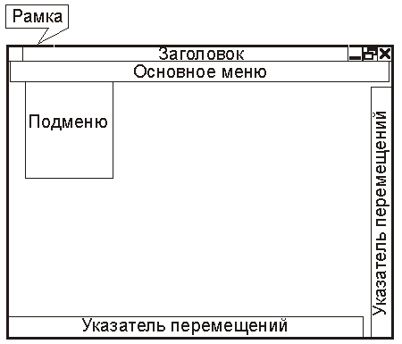 - Указатели перемещений - позволяют перемещать содержимое окна по горизонтальному и вертикальному
