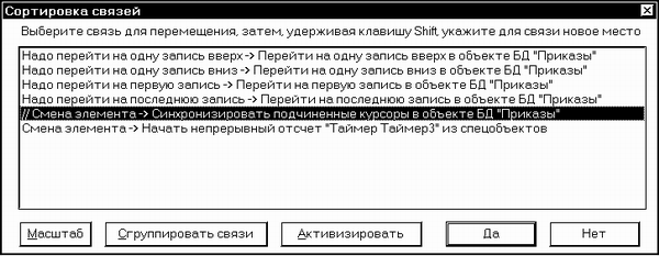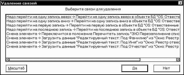 Снятие выбора производится аналогичной операцией. По выходу из окна удаления связей по клавише - ДА, произведется