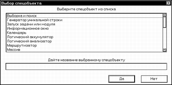 спецобъекта - нажатие клавиши “Нет” в диалоговом окне “”Выбор спецобъекта”. Подтверждение выбора спецобъекта