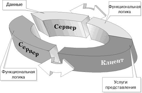 в архитектуре клиент/сервер в рамках одного клиента.