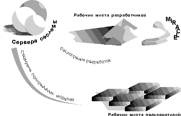 клиентскую часть, сервер баз данных и специализированный сервер системы Miracle.