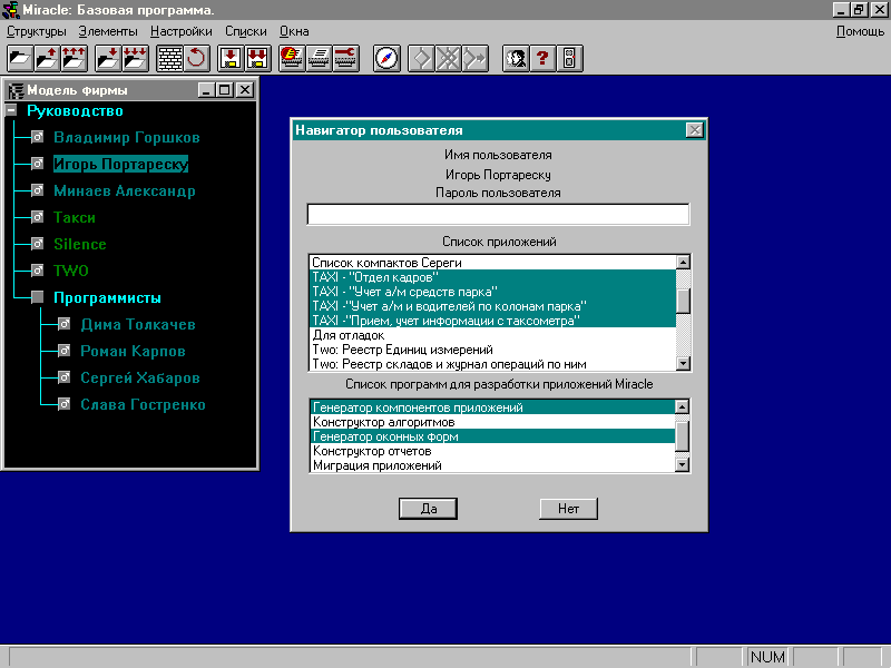 Сервер управления является основной программой системы Miracle. Он осуществляет хранение и распределение компонентов системы Miracle и предоставляет иерархический доступ к данным.